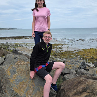 After lunch we took a walk to the sea. The children rode their bikes. We stopped at a little shop and Naomi bought me the famous honeycomb Glastry ice-cream made locally. This dairy farm used to supply Dubai airlines with ice-cream! I never tire of seeing the tall European buildings side by side and painted different colors. The sea was grey and relatively calm with hazy silhouettes of large cargo ships on the horizon. Oystercatcher birds were on the shore sporting their tuxedoes and orange beaks. On the way home I took pictures of wildflowers and chatted with Andy, a neighbor who was walking his dog. He and Naomi were talking about strimming their yard. "Strimming?" I asked? They pantomimed weed whacking. I laughed. They have a lot of different words for things over here.